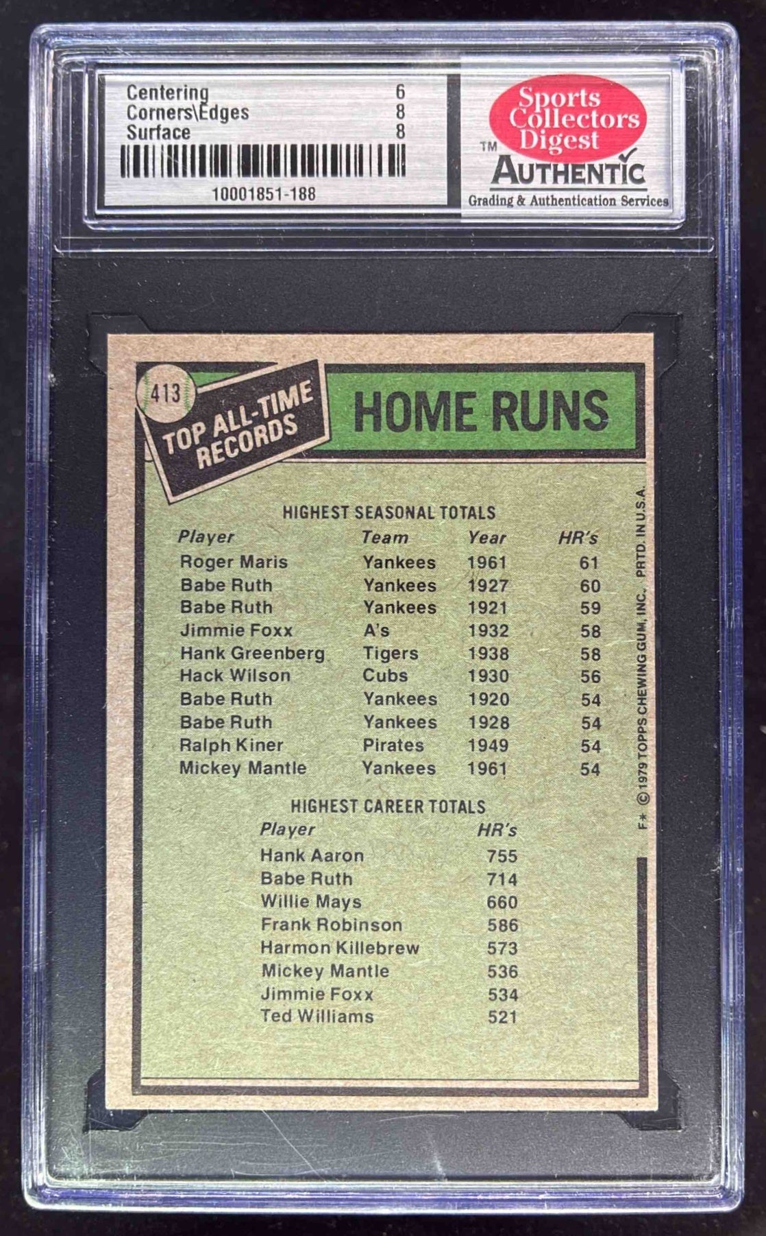 1979 Topps #413 All-Time Record Holders: Home Runs Roger Maris Hank Aaron SCD 7