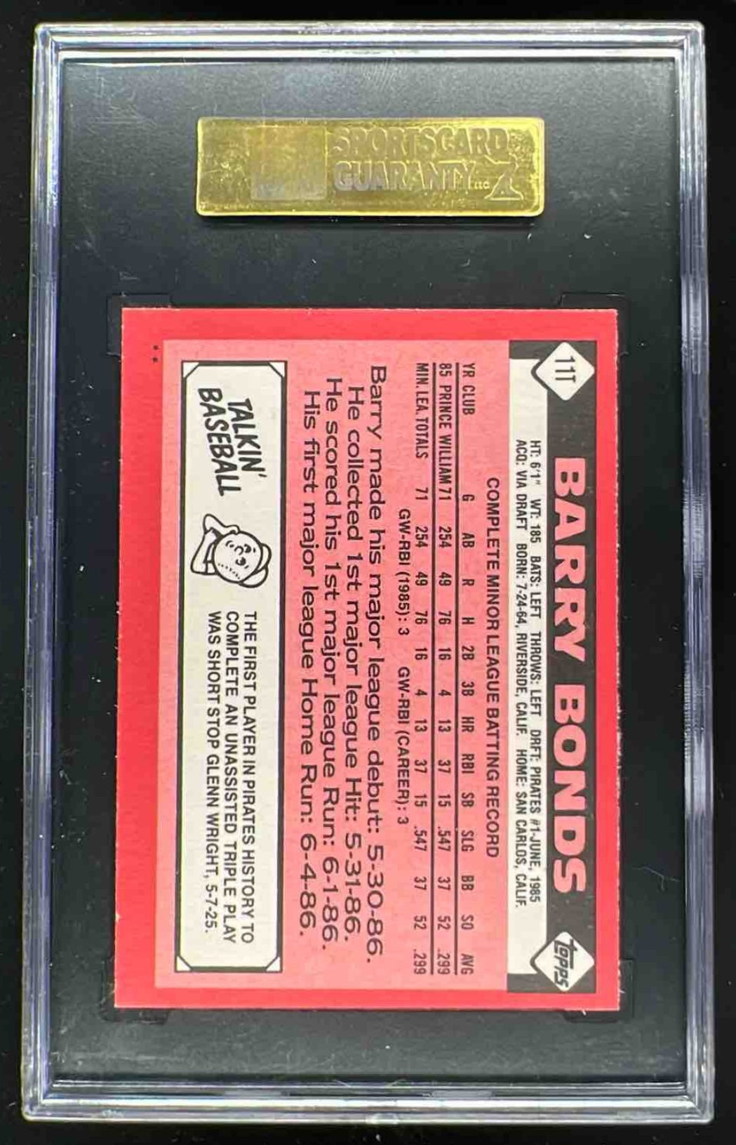 1986 Topps Traded #11T Barry Bonds RC SGC 10