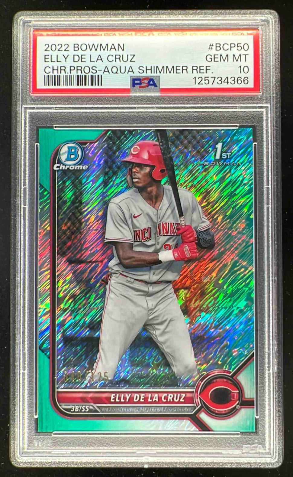 2022 Bowman Chrome Aqua Shimmer Refractor #BCP-50 Elly De La Cruz /125 PSA 10