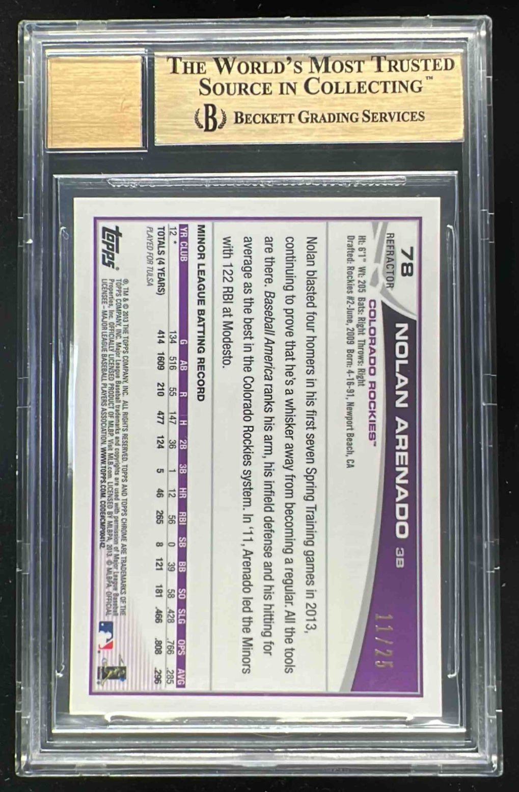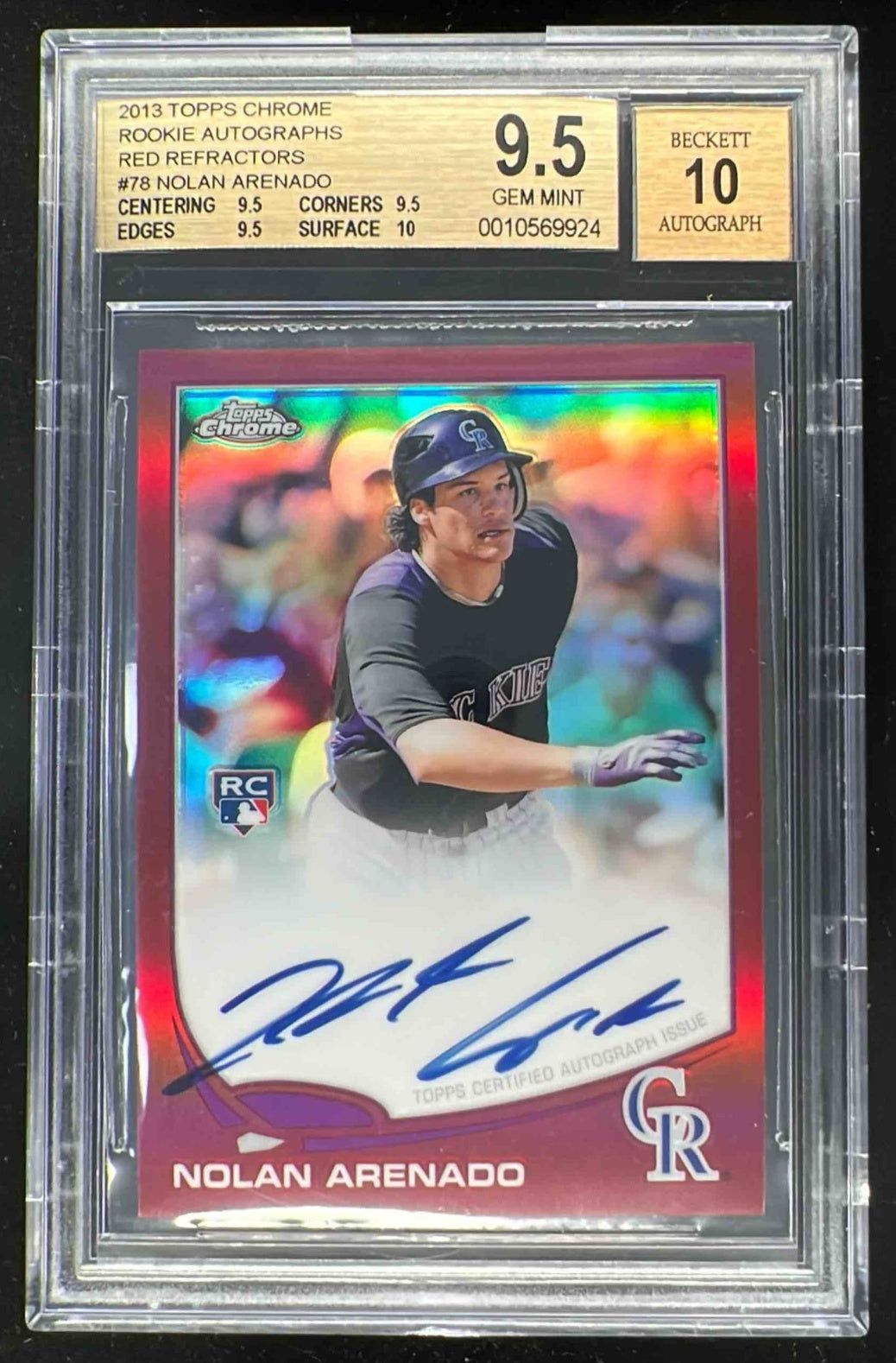 2013 Topps Chrome Rookie Red Refractors #78 Nolan Arenado RC Auto /25 BGS 9.5