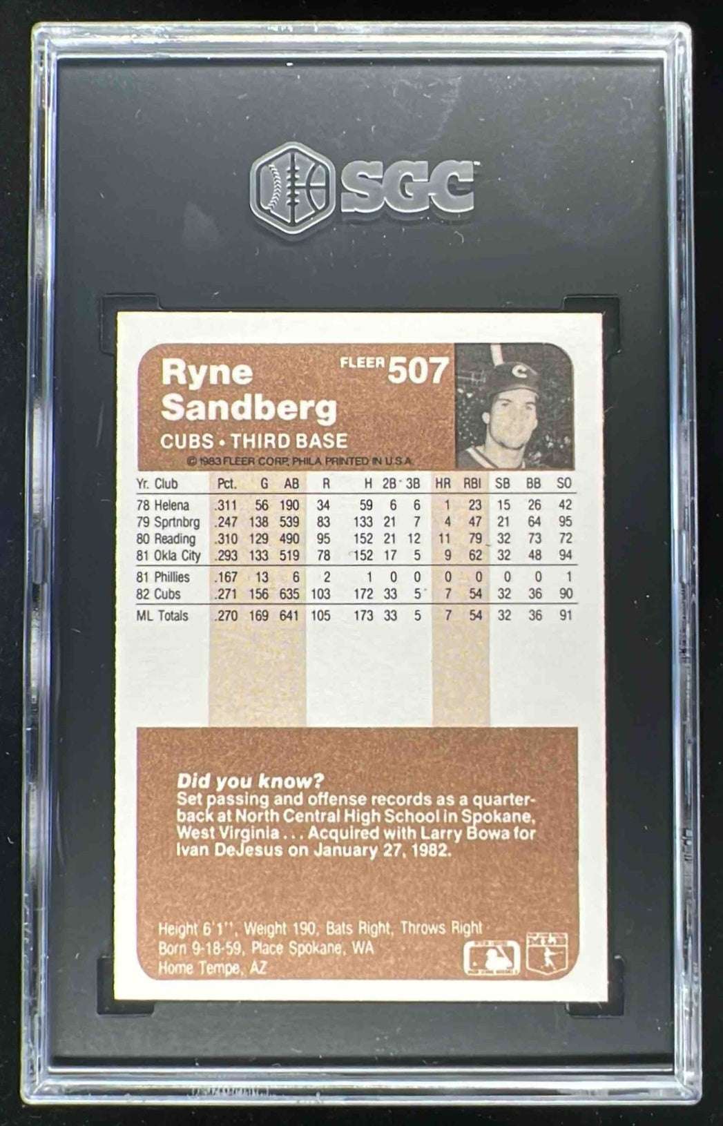 1983 Fleer #507 Ryne Sandberg RC SGC 10