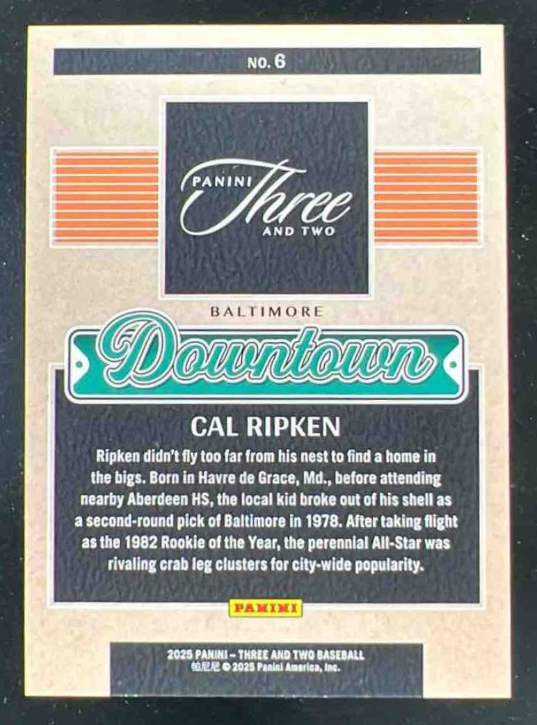 2025 Panini Three and Two Downtown #6 Cal Ripken