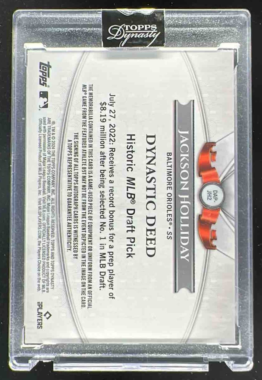 2024 Topps Dynasty Autograph Patch Silver #DAP-JH2 Jackson Holliday RC Auto /5