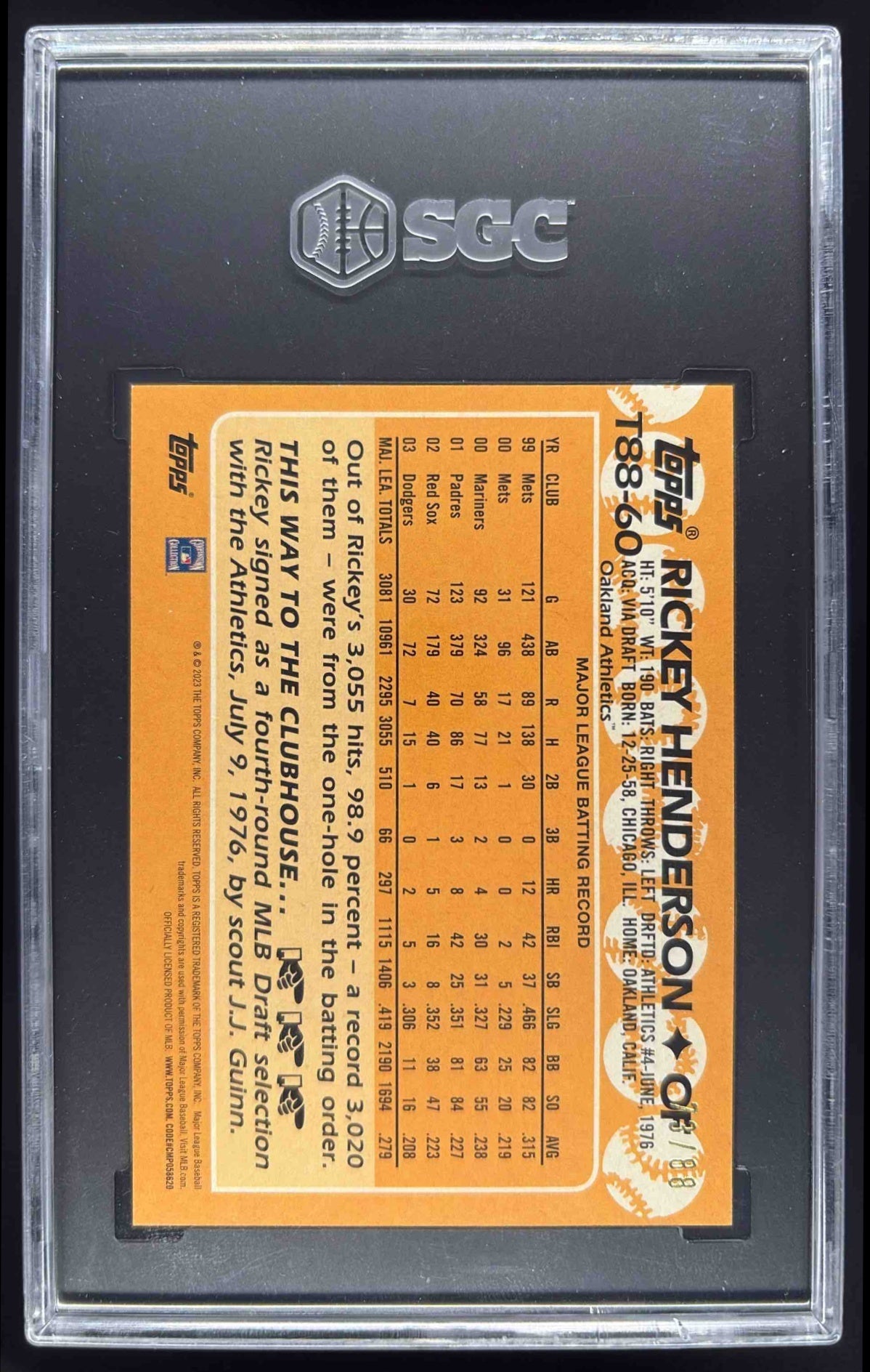 2023 Topps 1988 35th Real One Heritage Stock #T88-60 Rickey Henderson /88 SGC 10