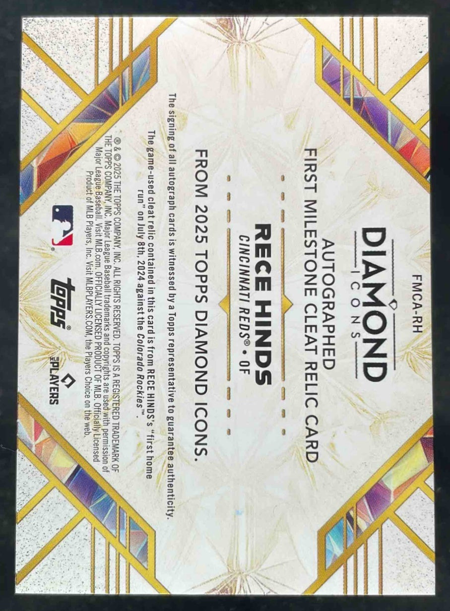 2025 Topps Diamond Icons First Milestone Cleat Relic Red Rece Hinds RC Auto /5