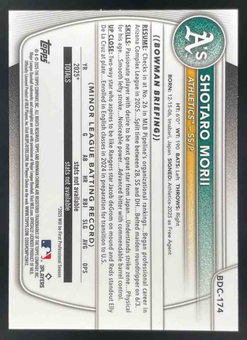 2025 Bowman Draft Chrome Purple Refractor #BDC-174 Shotaro Morii /250