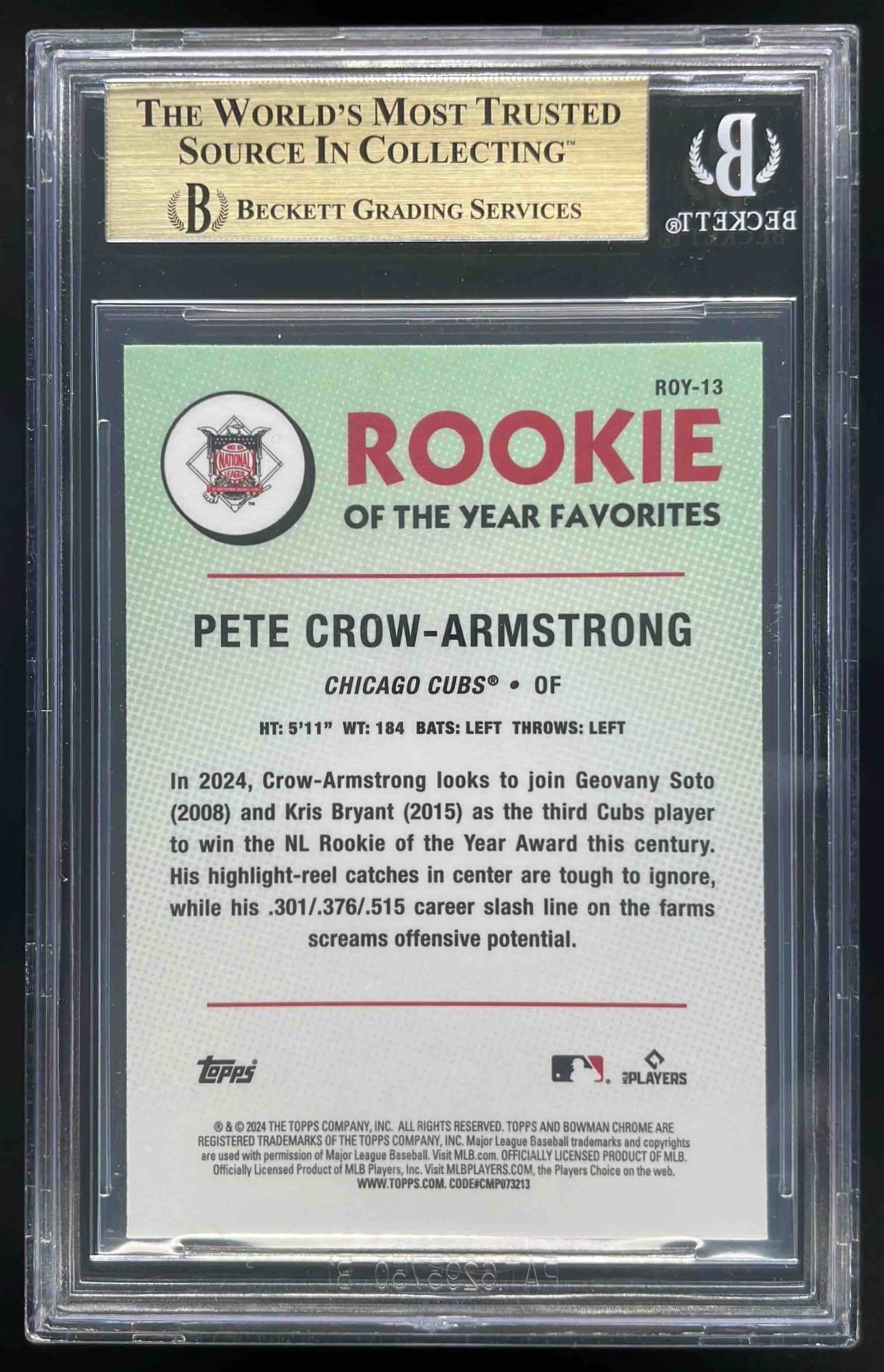 2024 Bowman Rookie of the Year Favorites Chrome Pete Crow-Armstrong RC BGS 9.5