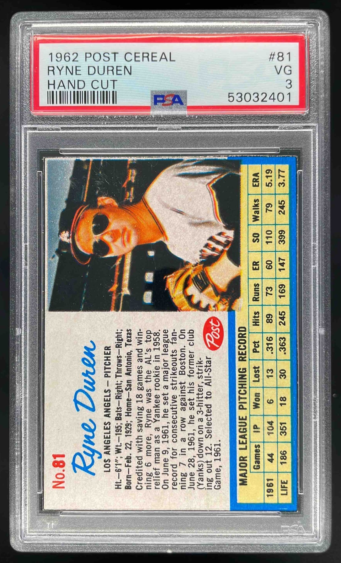 1962 Post Hand Cut #81 Ryne Duren PSA 3