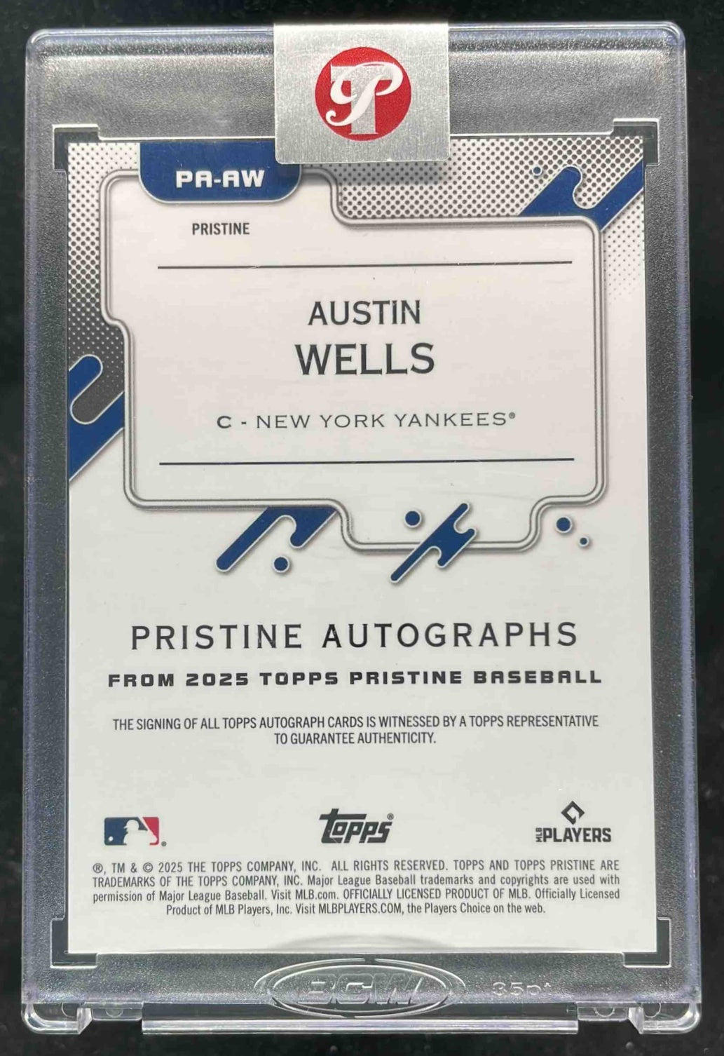 2025 Topps Pristine Autograph Blue Pristine Refractor #AW Austin Wells Auto /75