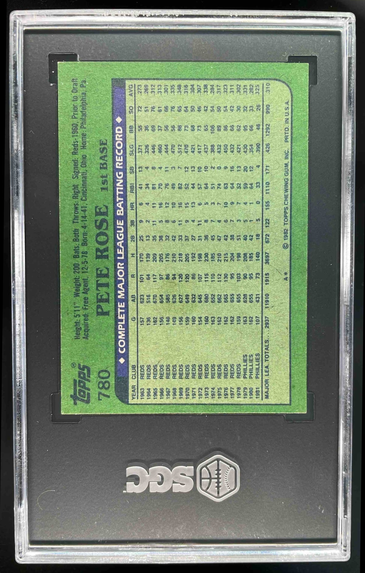 1982 Topps #780 Pete Rose SGC 7