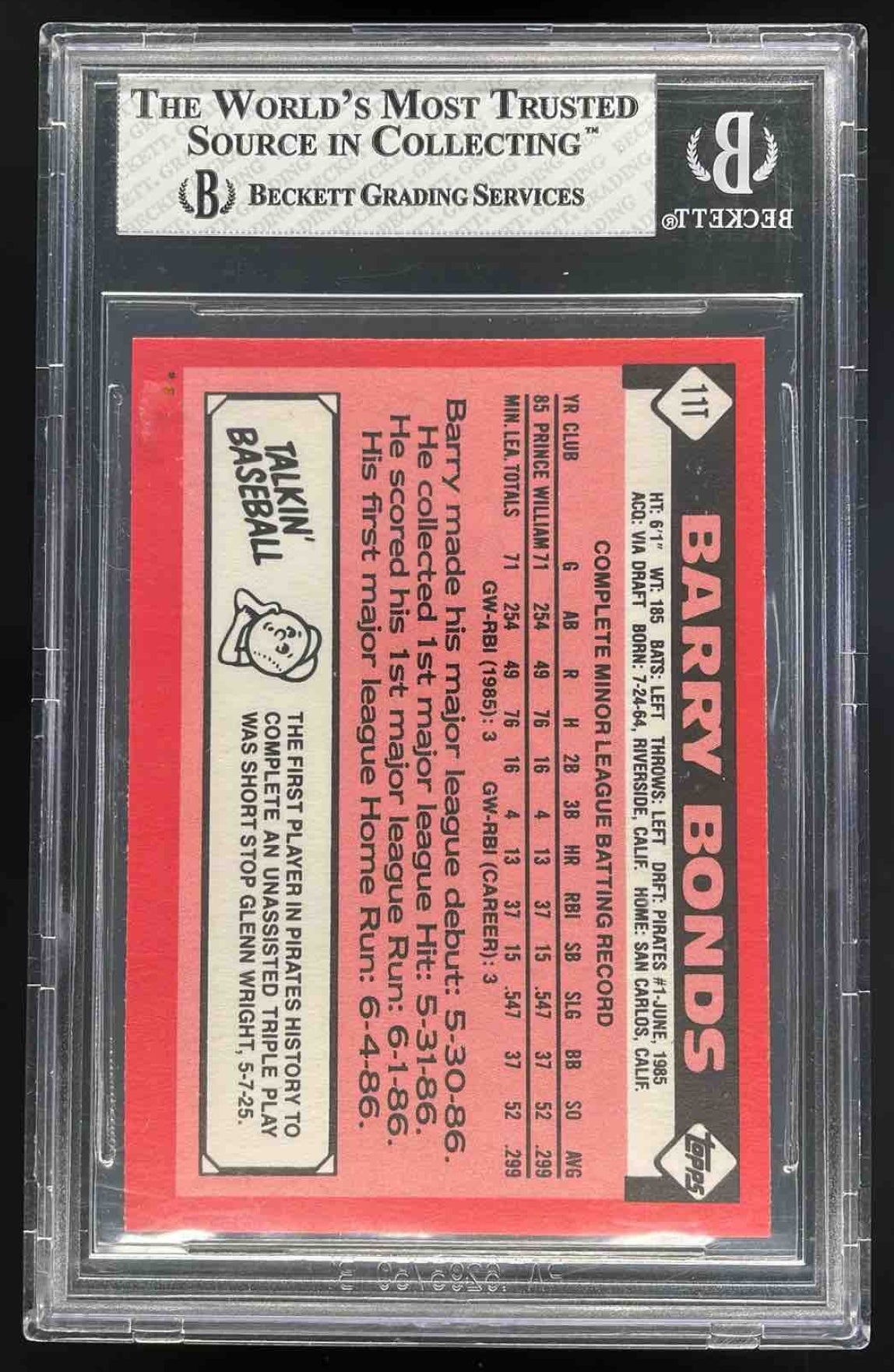 1986 Topps Traded #11T Barry Bonds RC BGS 8