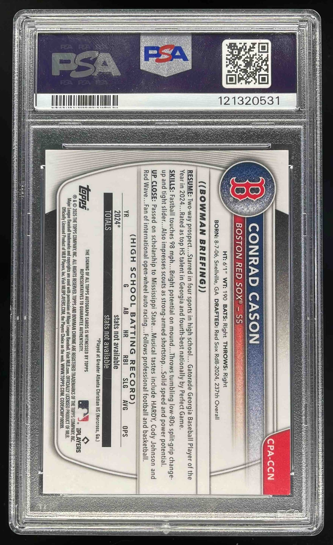 2025 Bowman Chrome Prospect Blue X-Fractor #CCN Conrad Cason RC Auto /150 PSA 9