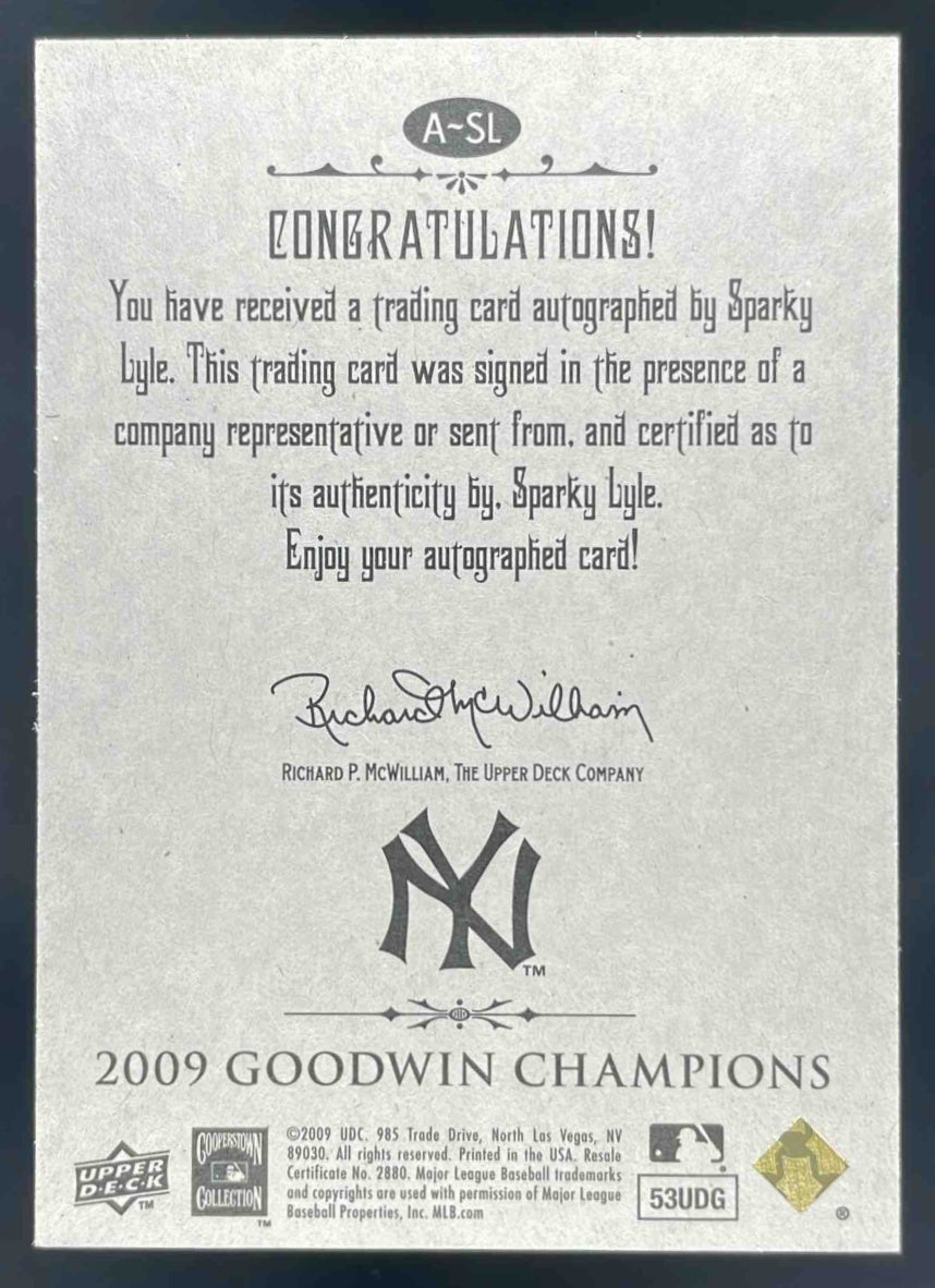 2009 Upper Deck Goodwin Champions Autographs #A-SL Sparky Lyle Auto