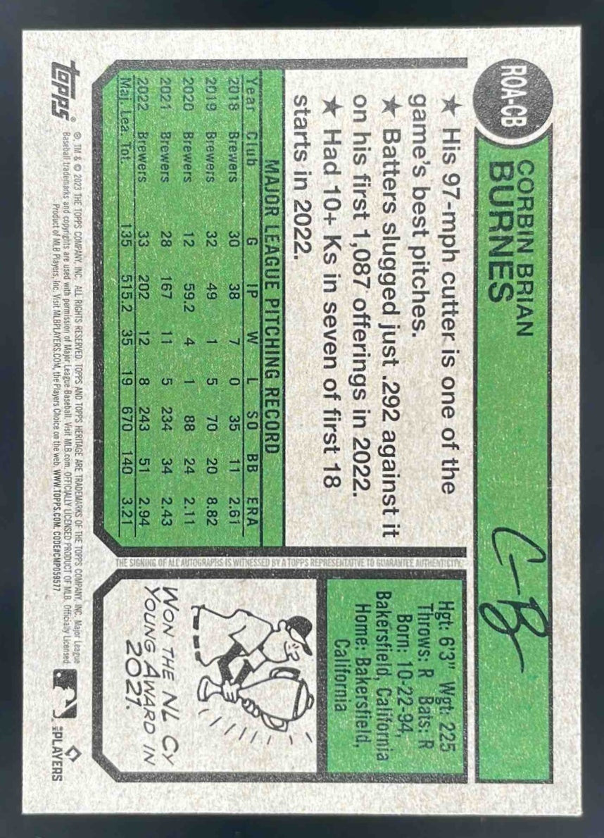2023 Topps Heritage Real One Autographs #ROA-CB Corbin Burnes Autograph Auto