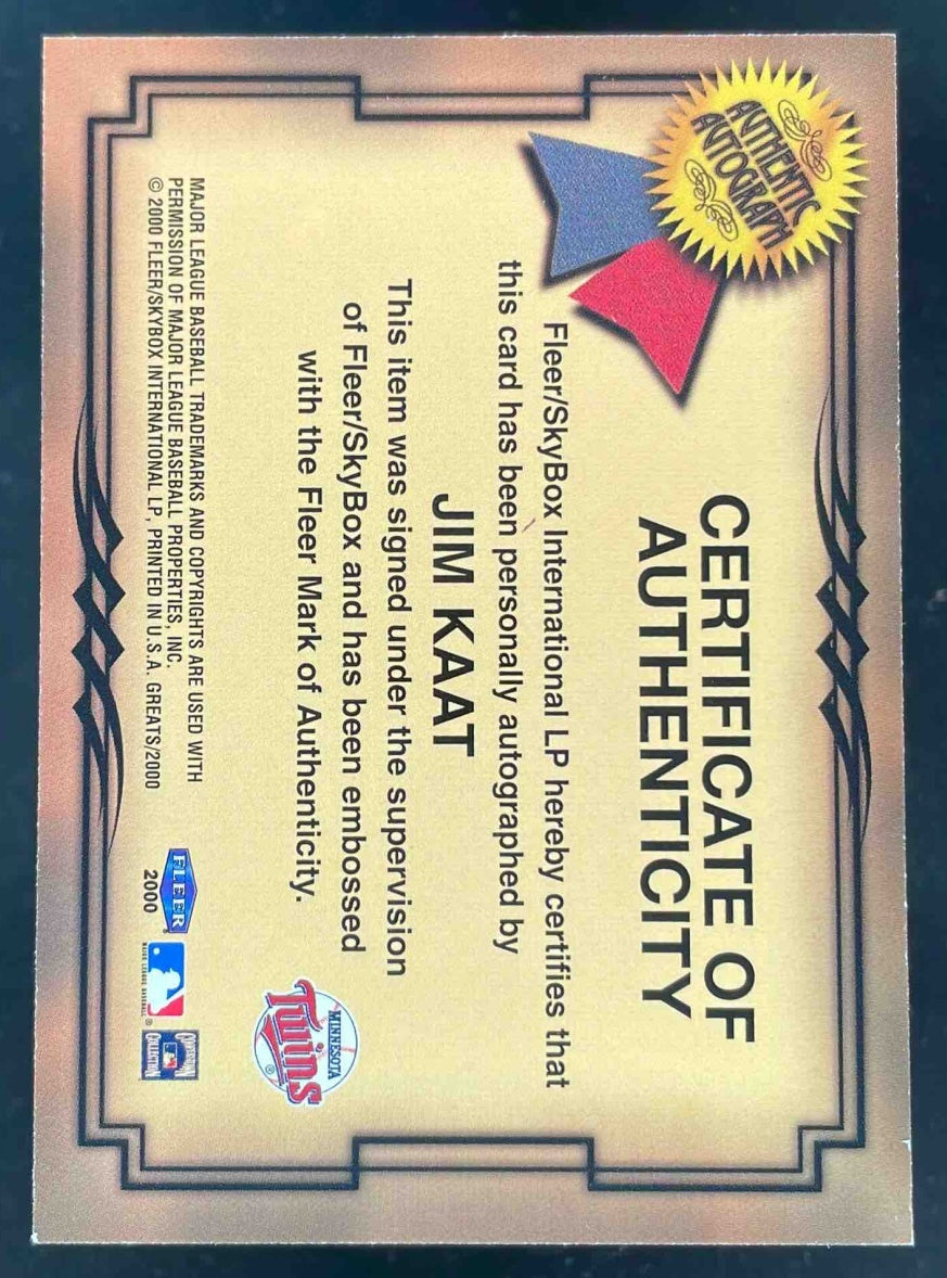 2000 Fleer Greats of the Game Autographs #NNO Jim Kaat Auto