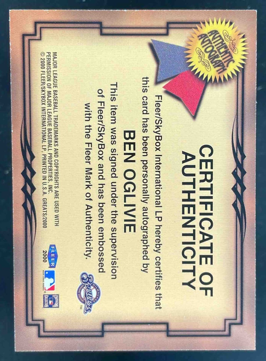 2000 Fleer Greats of the Game Autographs #NNO Ben Oglivie Auto