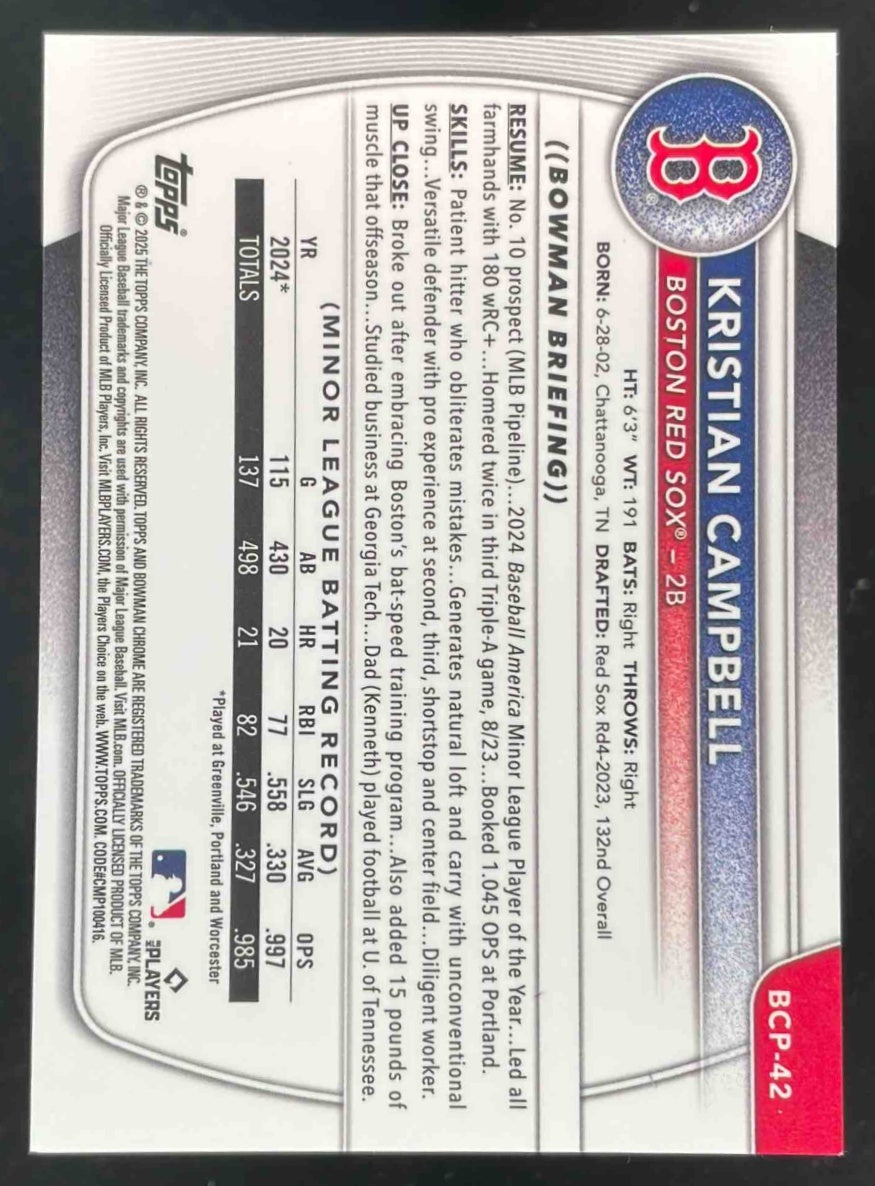 2025 Bowman Sapphire Chrome Yellow Refractors #BCP-42 Kristian Campbell /75