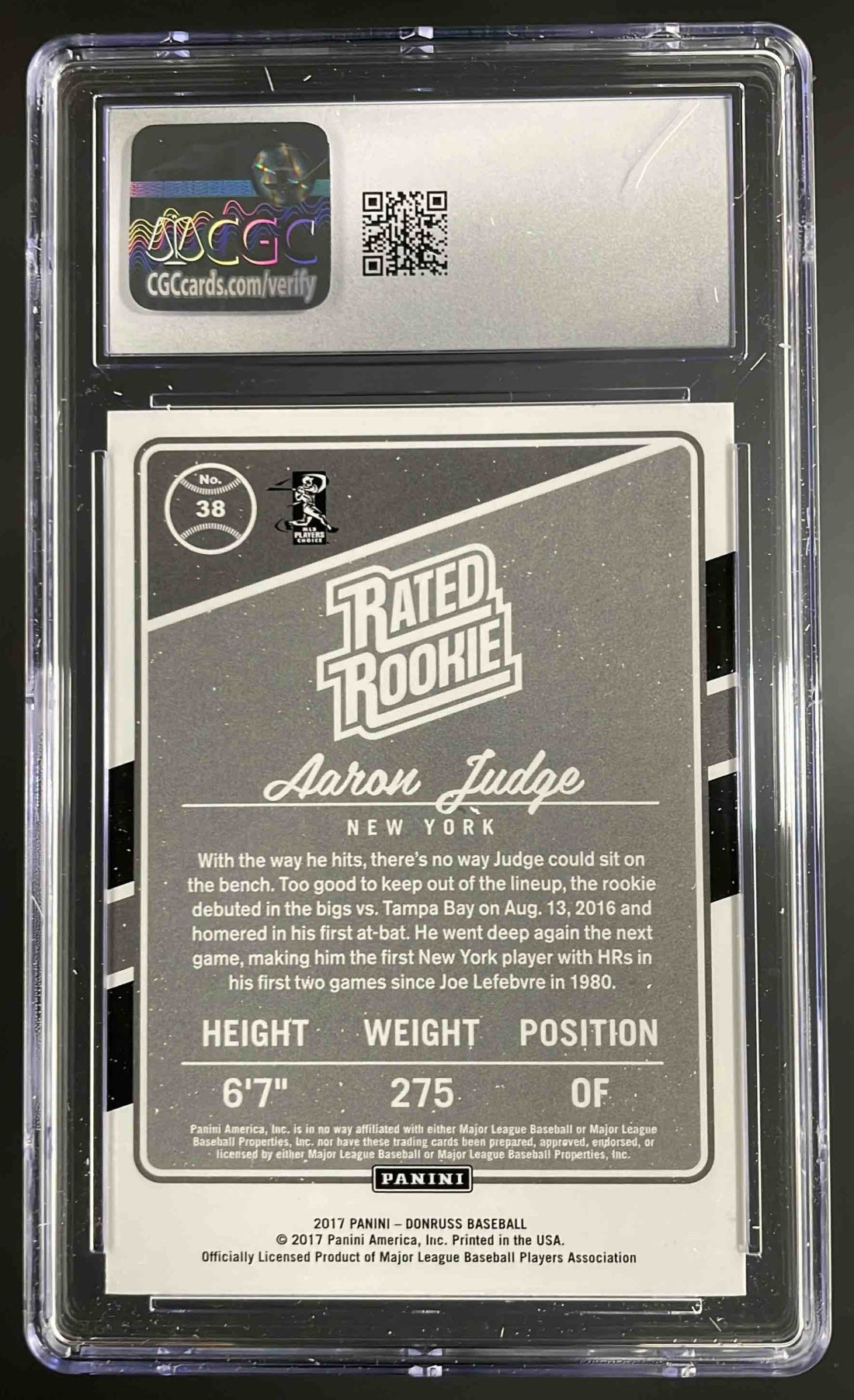 2017 Panini Donruss #38 Aaron Judge RC Rated Rookie CGC 10