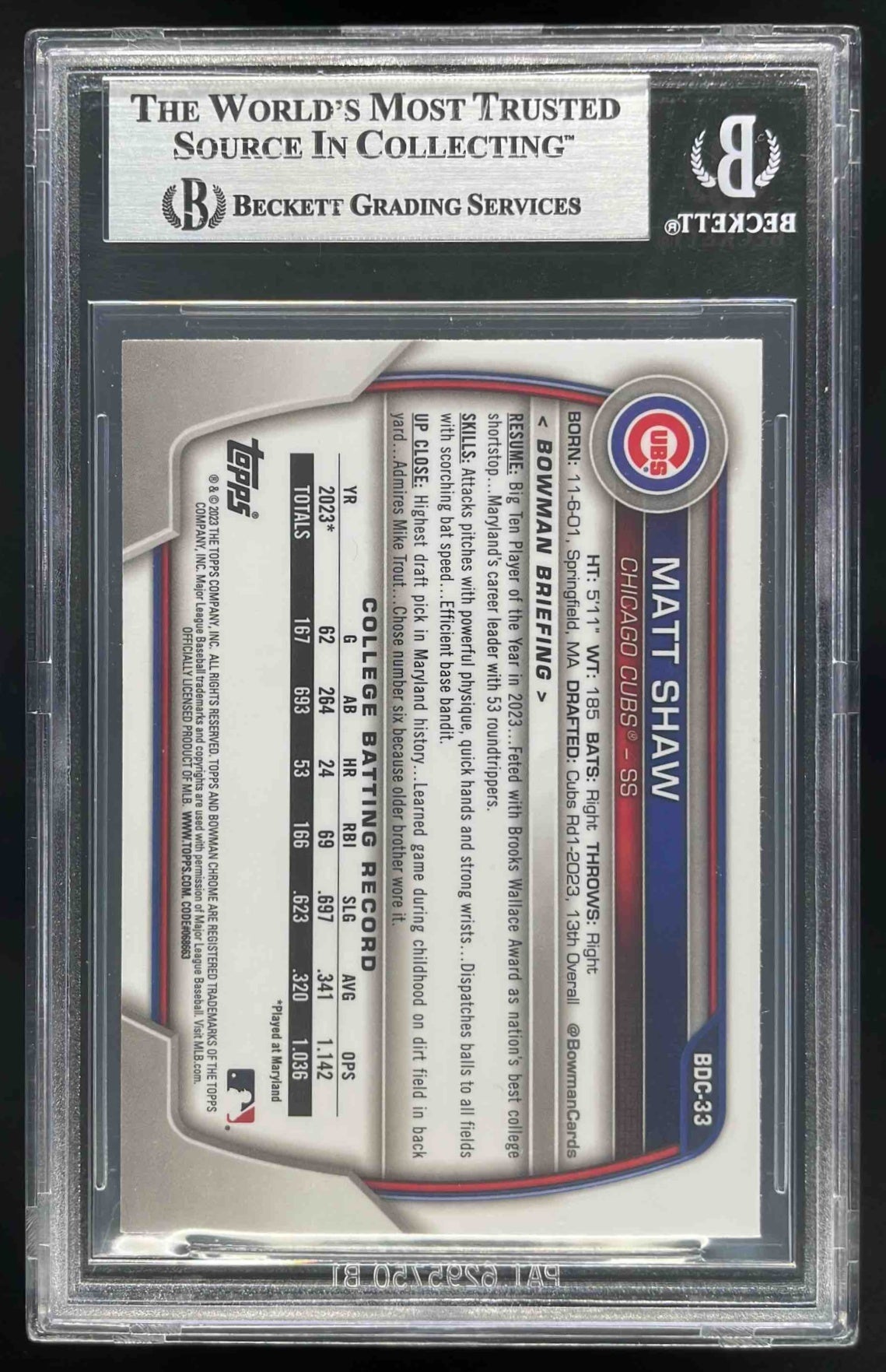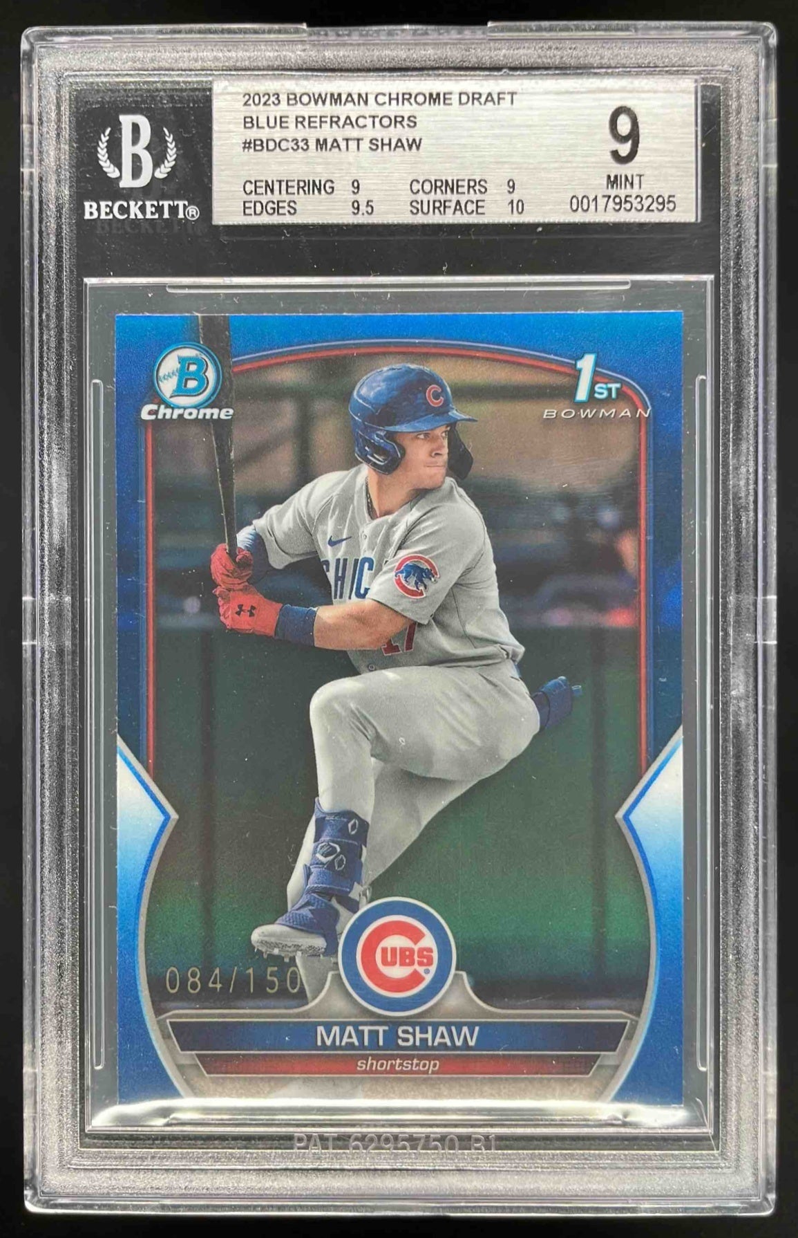 2023 Bowman Draft Chrome Blue Refractor #BDC-33 Matt Shaw RC /150 BGS 9