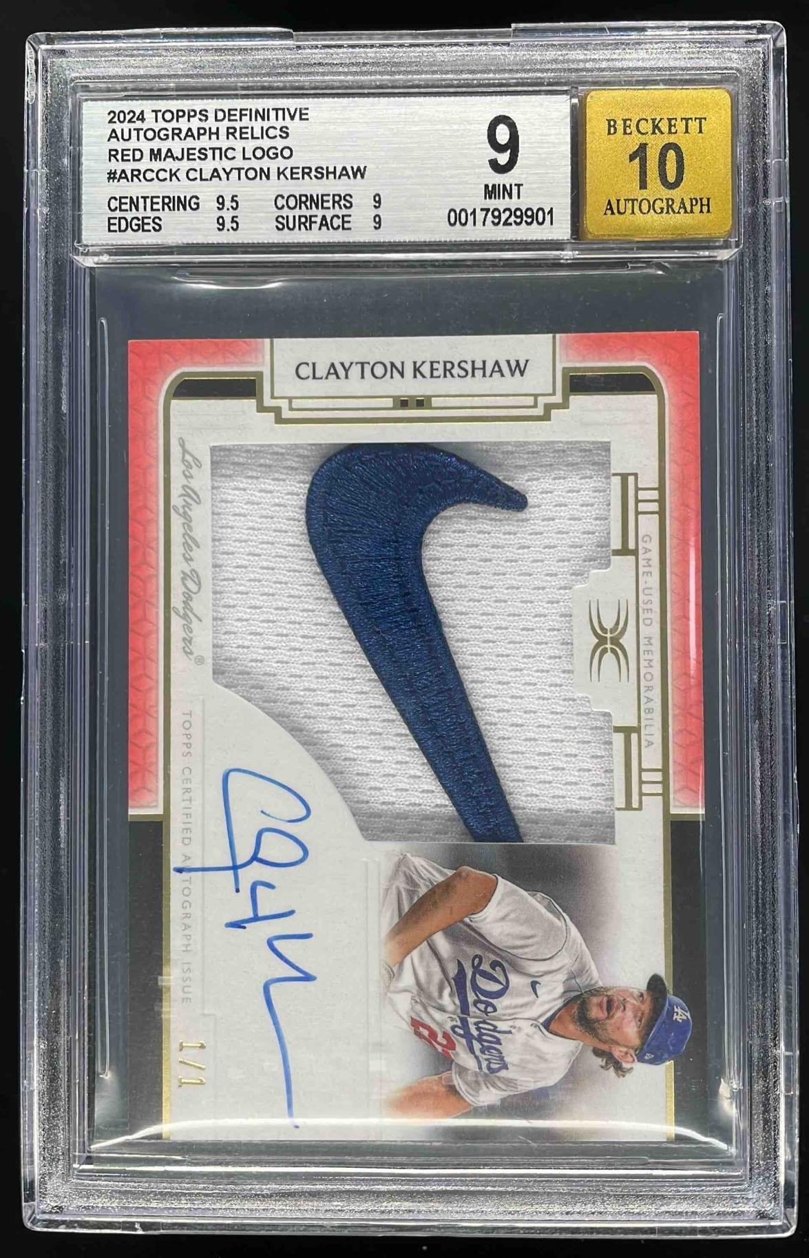 2024 Topps Definitive Relics Majestic Red Clayton Kershaw Auto 1/1 BGS 9