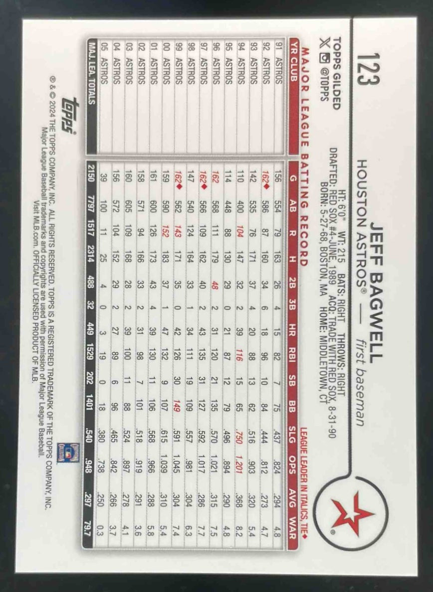 2024 Topps Gilded Collection Gold Lava Refractor #123 Jeff Bagwell /10