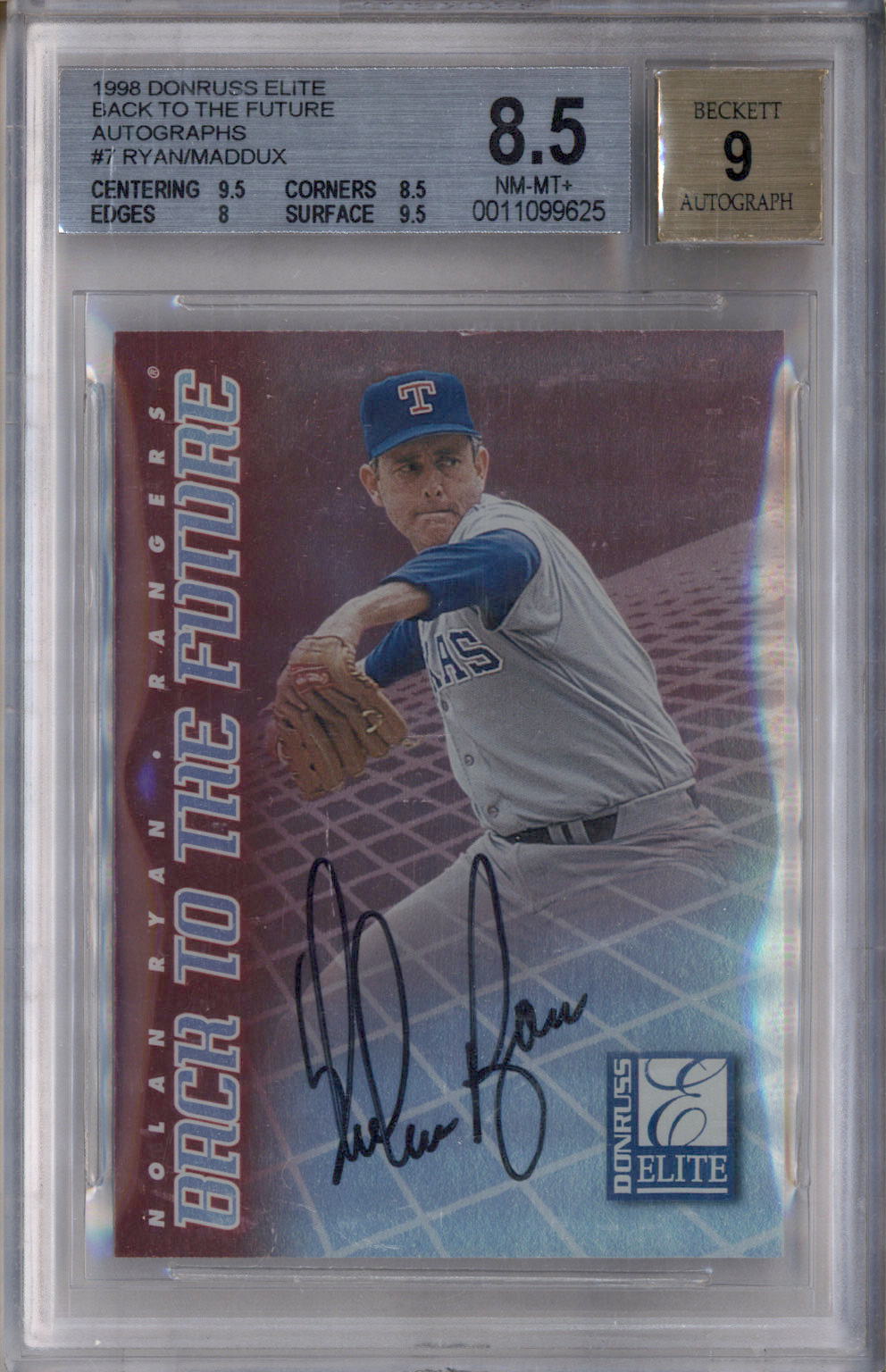 1998 Donruss Elite Back to the Future Auto Nolan Ryan Greg Maddux /1500 BGS 8.5