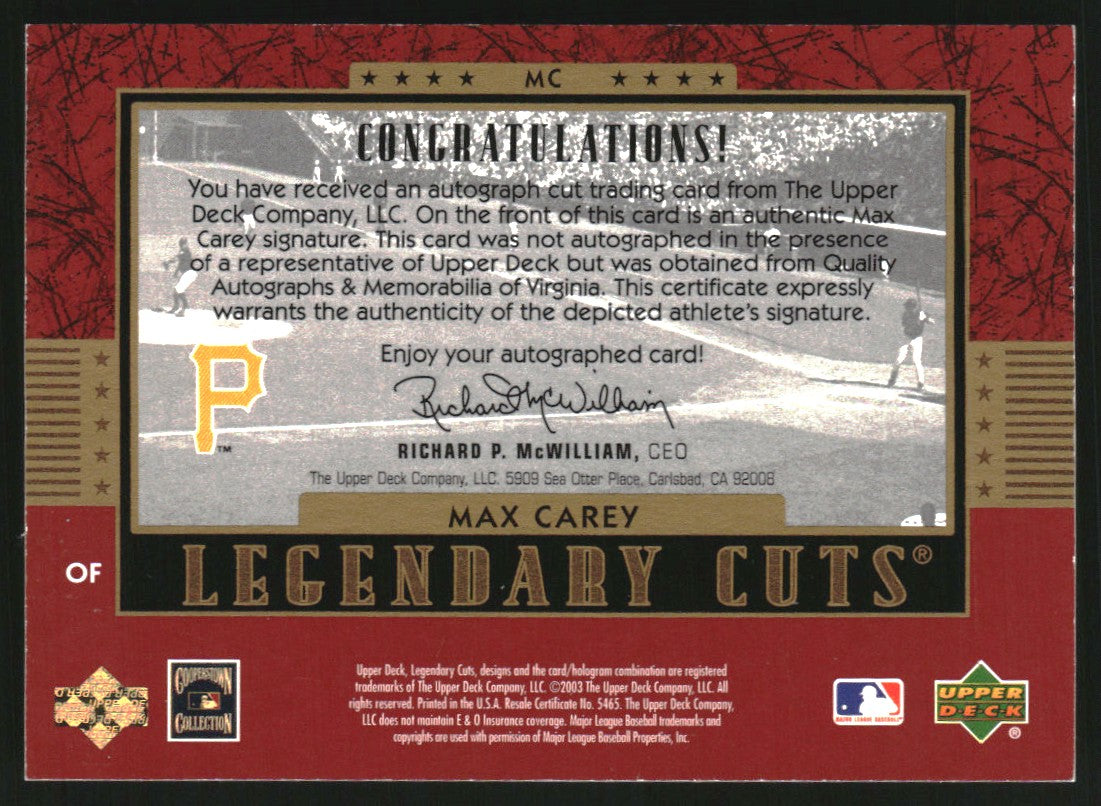2003 SP Legendary Cuts Autographs #MC Max Carey Auto /18