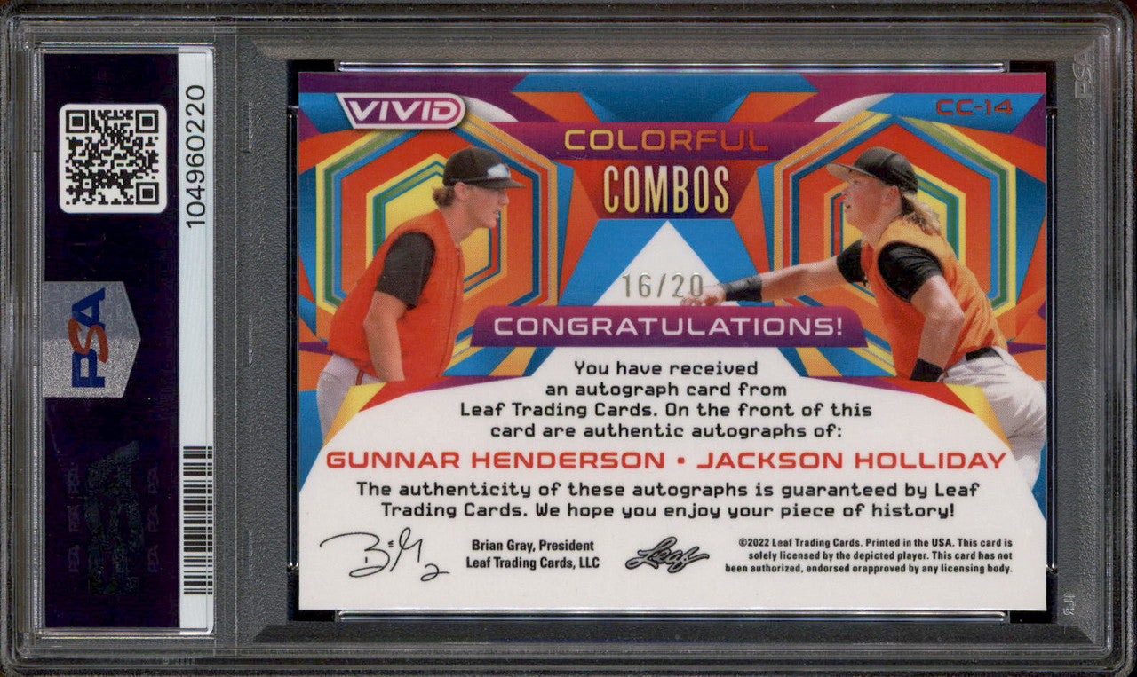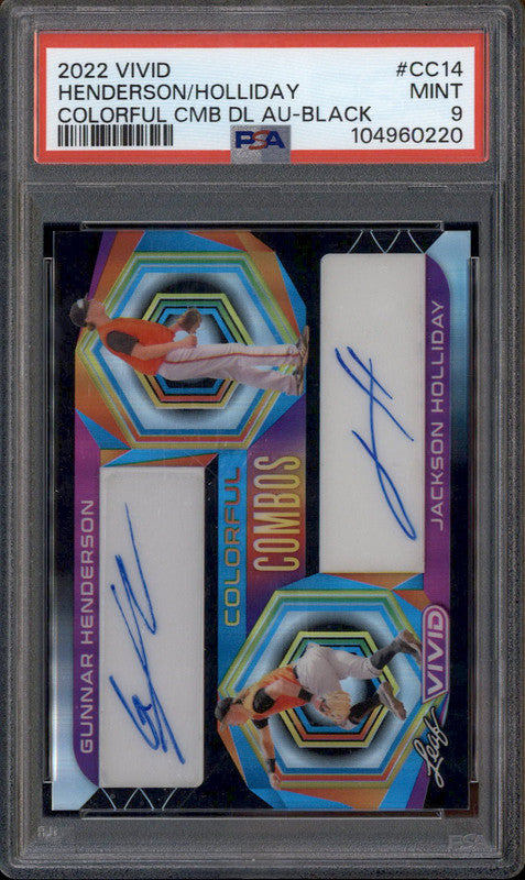 2022 Leaf Vivid Colorful Dual Auto Black Gunnar Henderson Jackson Holliday PSA 9