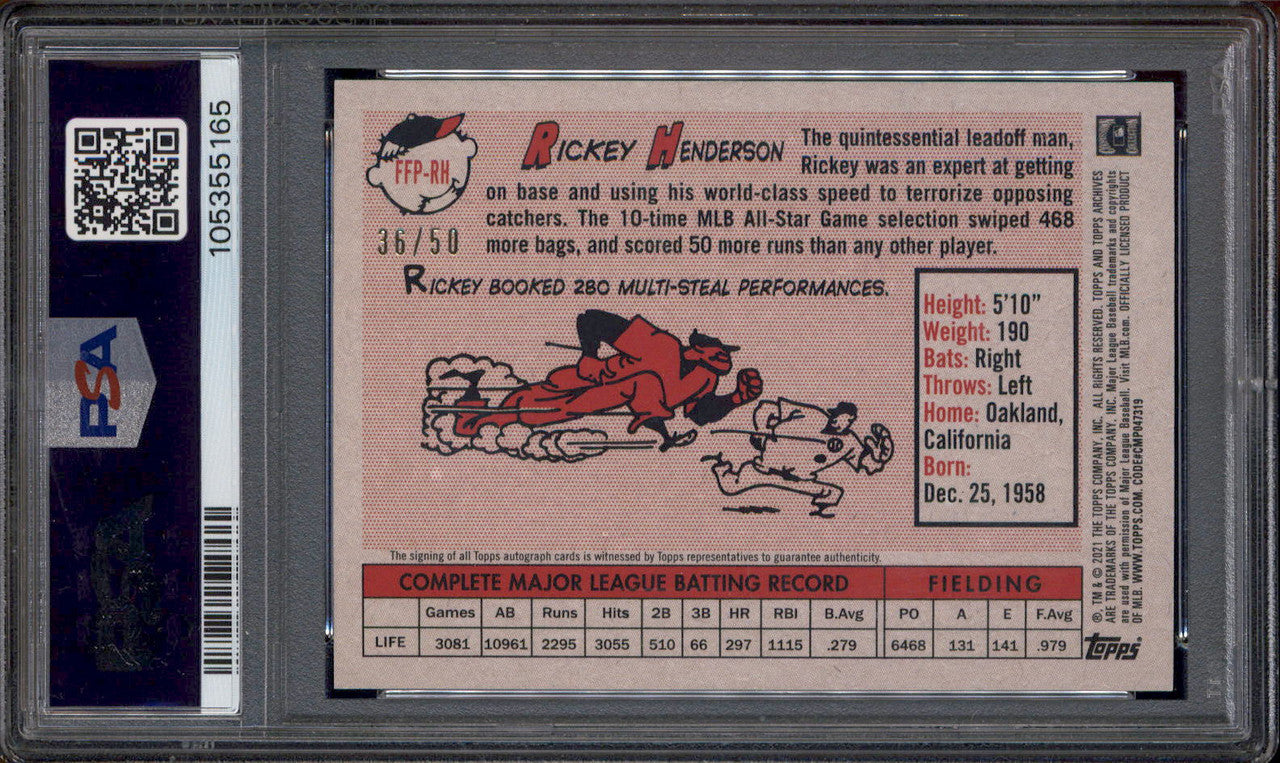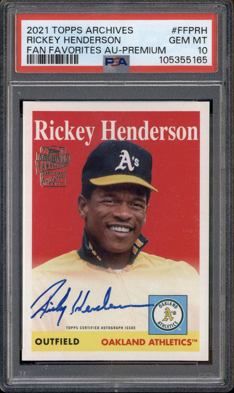 2021 Topps Archives Fan Favorites Premium #FFPRH Rickey Henderson Auto PSA 10