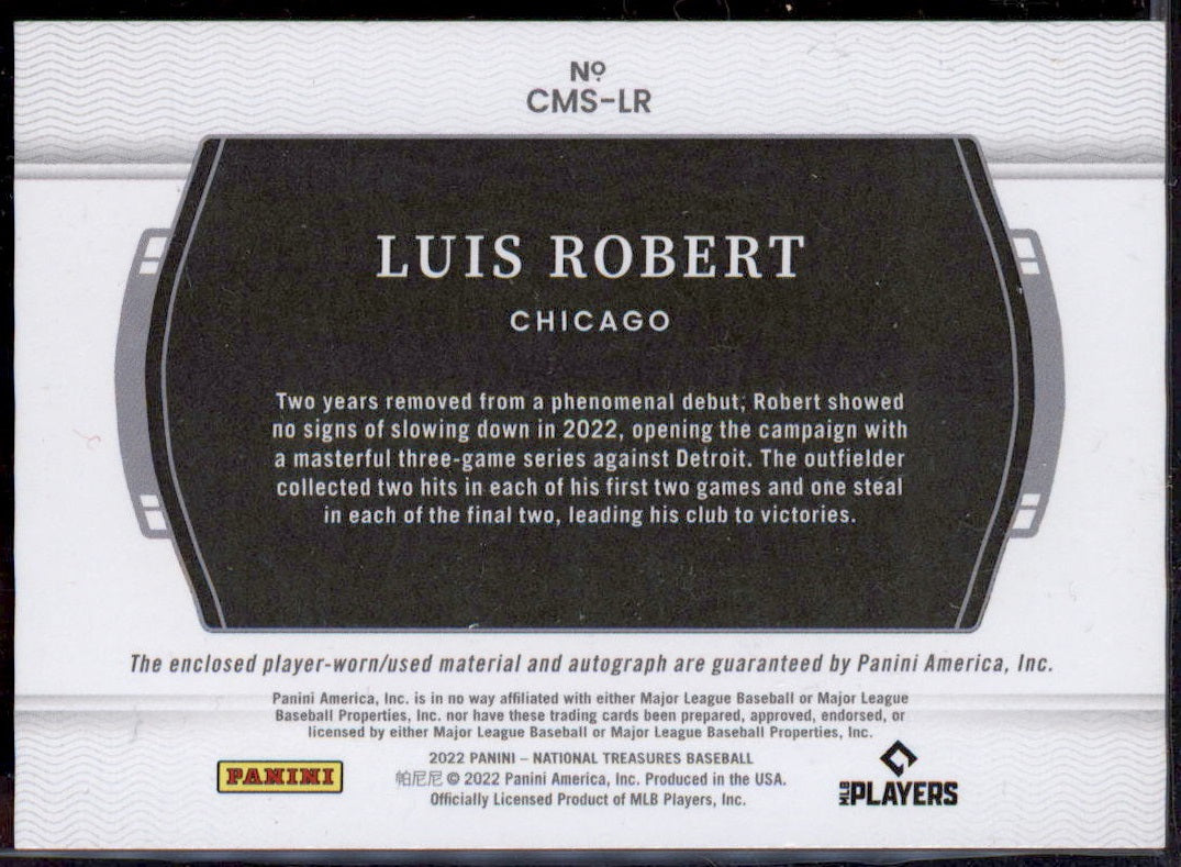 2022 National Treasures Colossal Material Auto Brand Logo Luis Robert 1/1