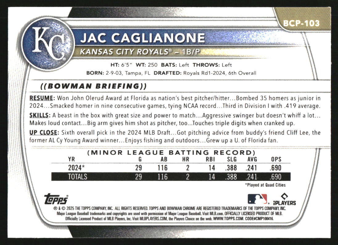 2025 Bowman Chrome Prospects Green Geometric Refractor #103 Jac Caglianone /99