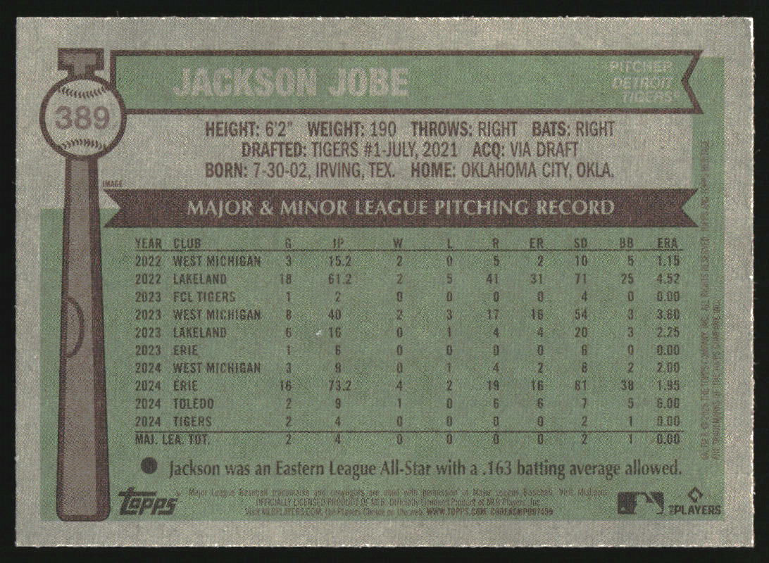 2025 Topps Heritage Image Variations #389 Jackson Jobe RC Rookie