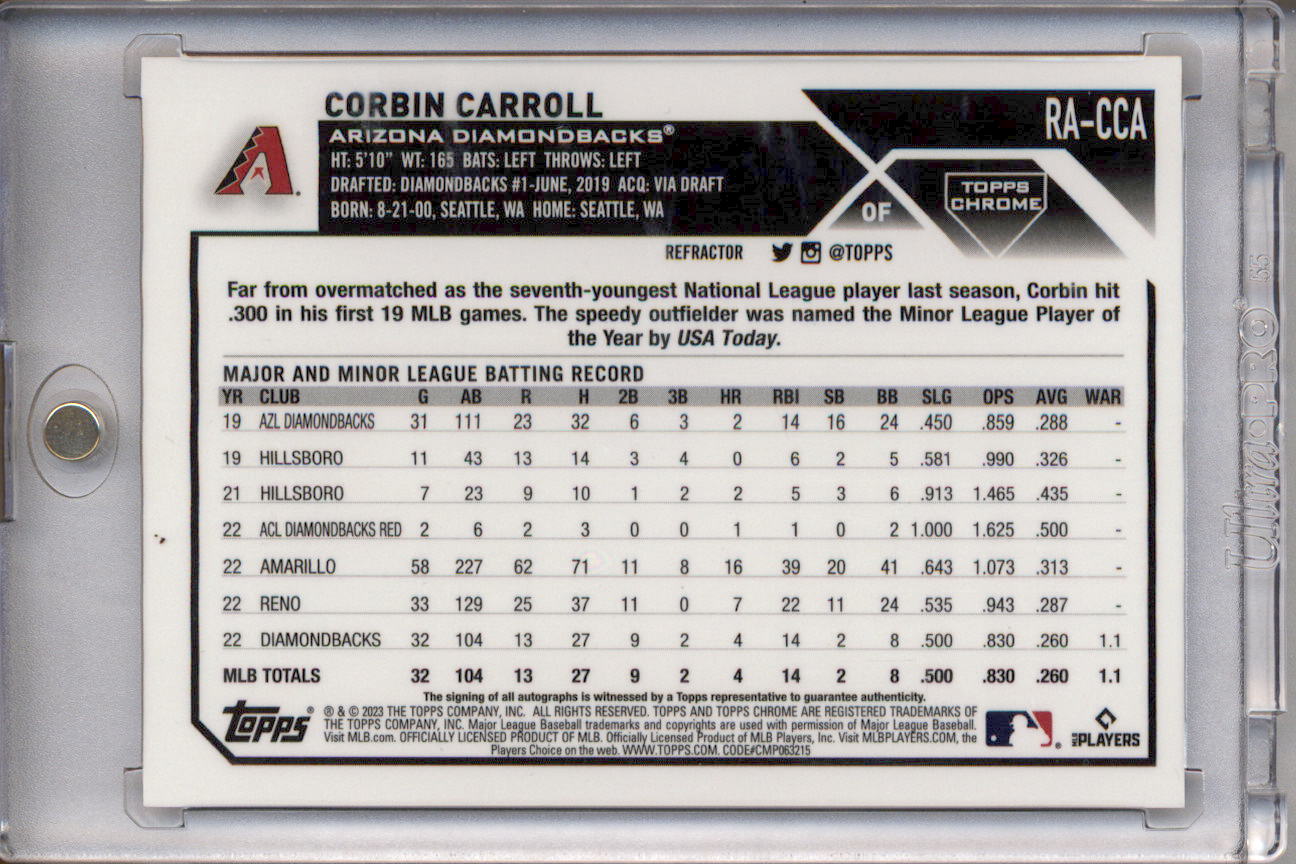 2023 Topps Chrome Rookie Autographs Refractor Corbin Carroll RC Auto /499