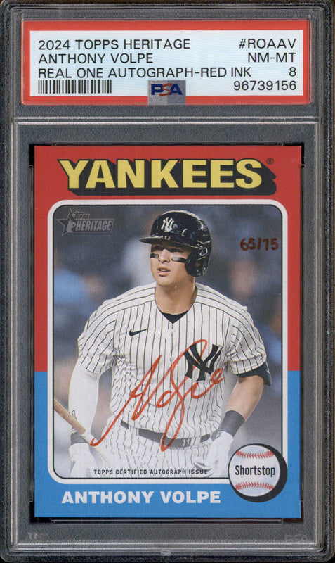 2024 Topps Heritage Real One Autographs Red Ink Anthony Volpe Auto /75 PSA 8