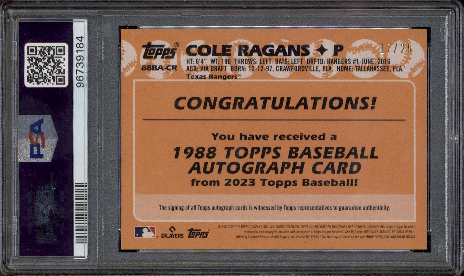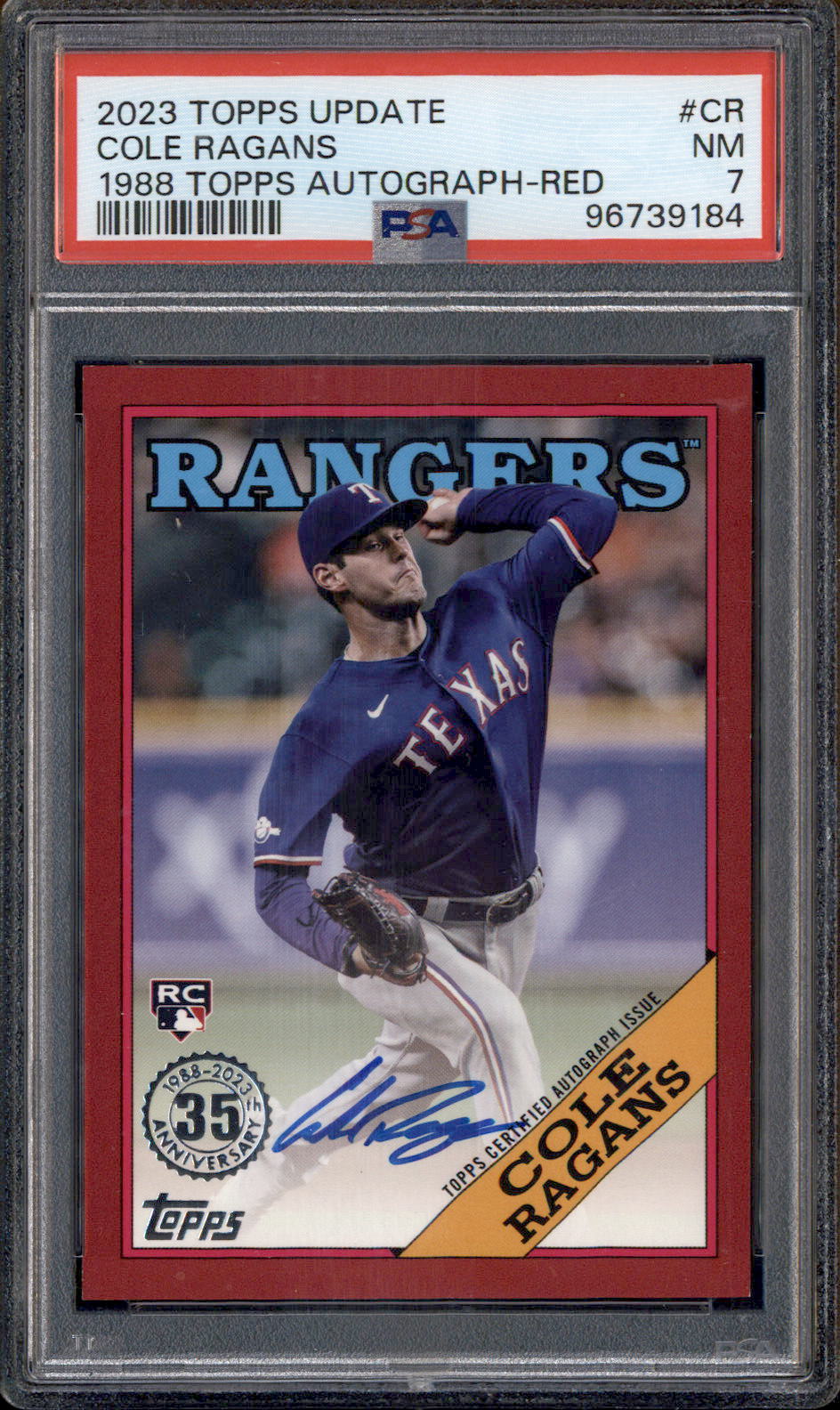 2023 Topps Update 1988 Topps Baseball Auto Red #CR Cole Ragans RC /25 PSA 7