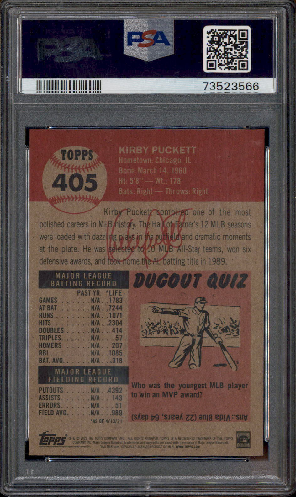2021 Topps Living #405 Kirby Puckett PSA 10
