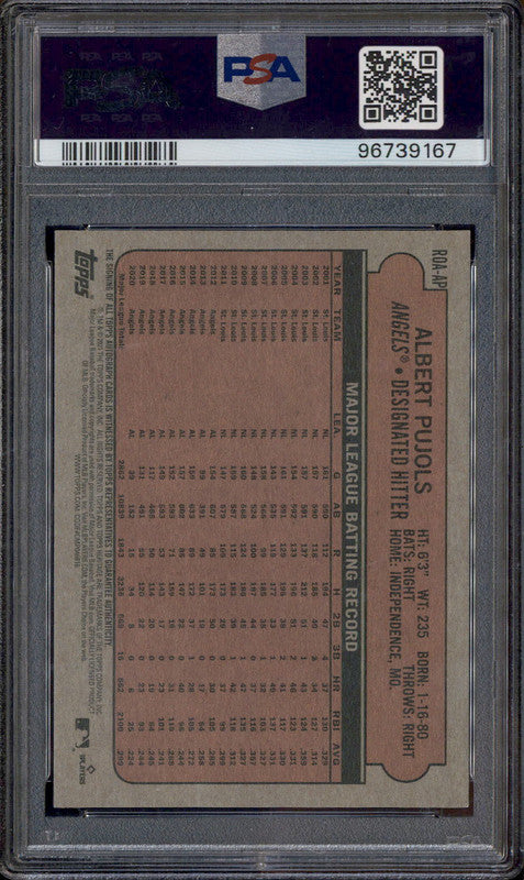 2021 Topps Heritage Real One Autograph Red Ink #AP Albert Pujols Auto /72 PSA 10