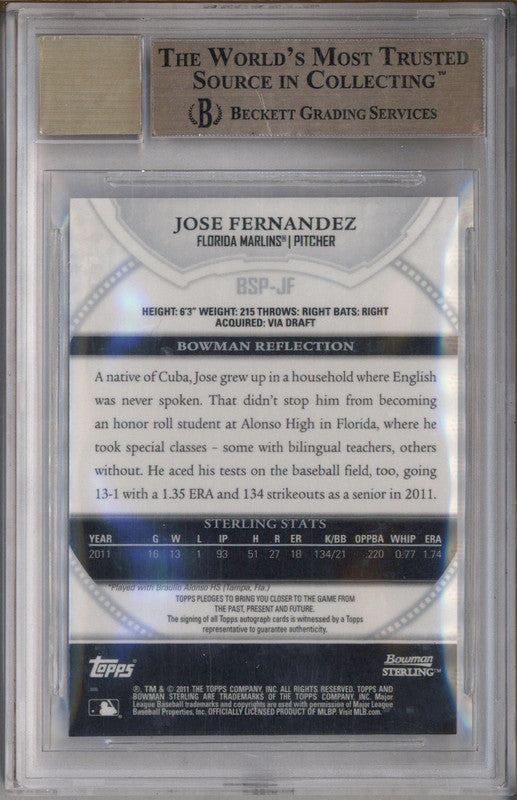 2011 Bowman Sterling Prospect Autographs #JF Jose Fernandez Auto BGS 9.5