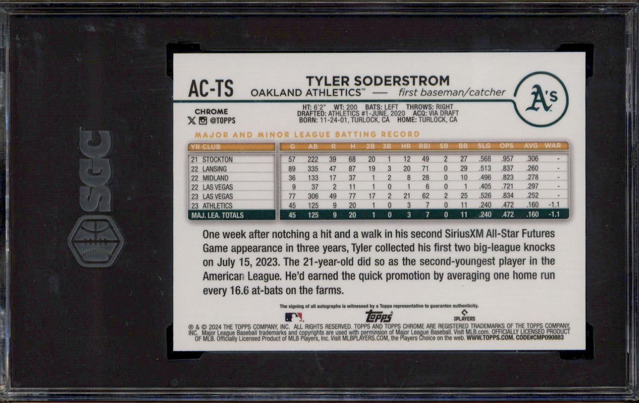 2024 Topps Chrome Update Auto Aqua Wave Refractor Tyler Soderstrom RC /199 SGC 9
