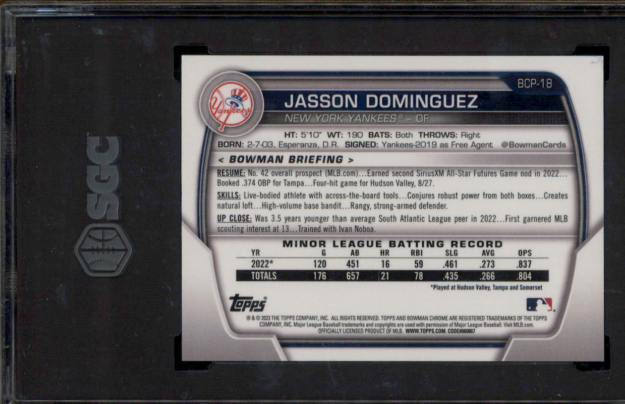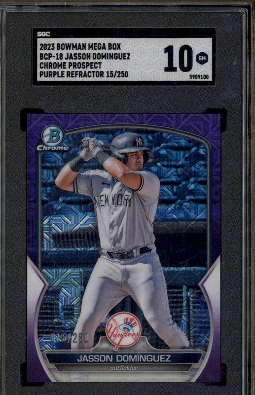 2023 Bowman Chrome Mega Box Purple Refractor #BCP18 Jasson Dominguez /250 SGC 10