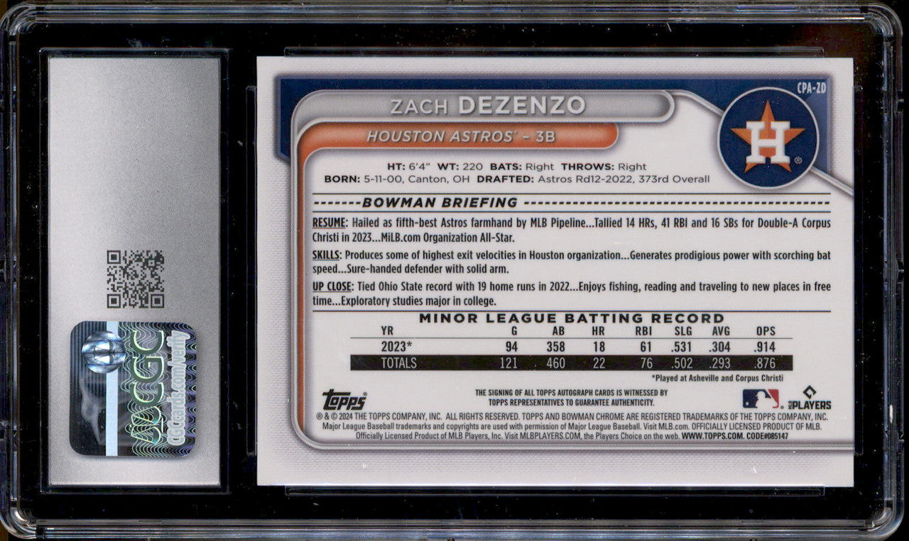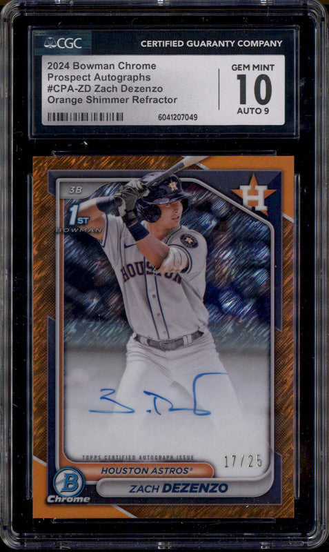 2024 Bowman Chrome Orange Shimmer Refractor Zach Dezenzo RC Auto /25 CGC 10