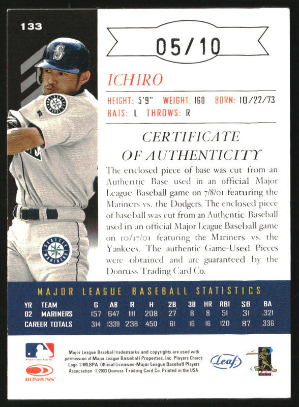 2003 Leaf Limited Threads Double Prime #133 Ichiro Suzuki /10