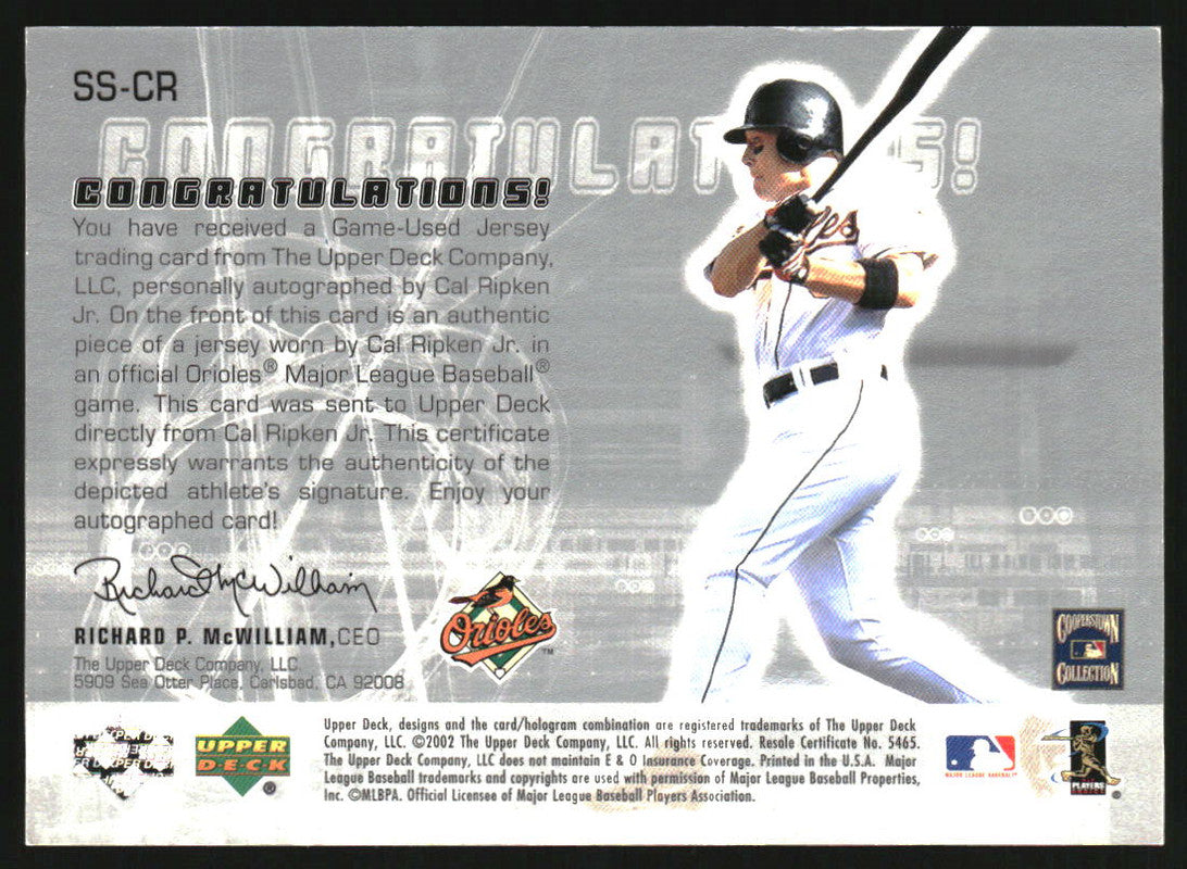 2002 UD Rookie Update Star Tributes Signatures Copper Cal Ripken Jr. Auto /25