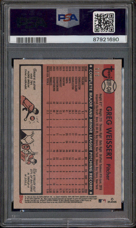 2023 Topps Archives Fan Favorites Auto Foilfractor Greg Weissert RC 1/1 PSA 10