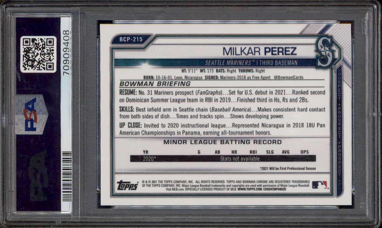2021 Bowman Chrome Mega Box Orange Refractor #215 Milkar Perez RC /25 PSA 10
