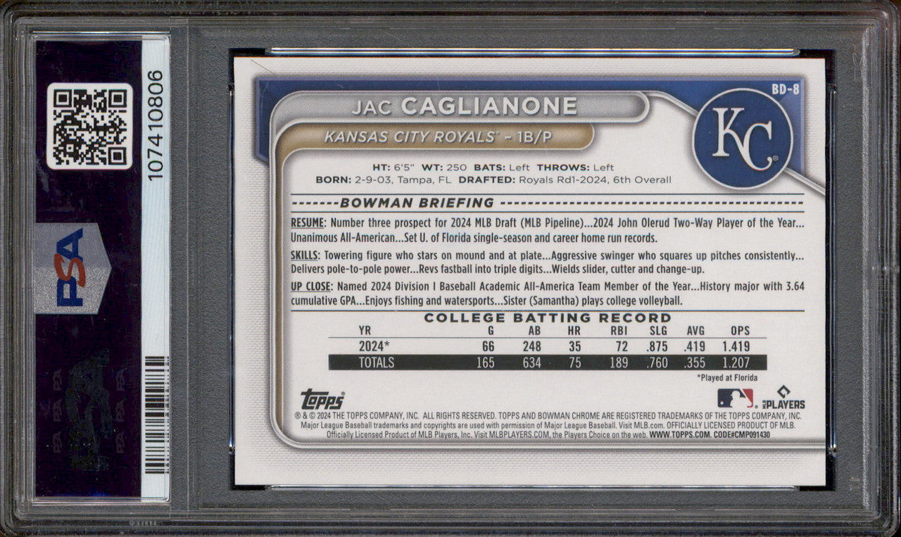 2024 Bowman Draft #BD8 Jac Caglianone RC PSA 10