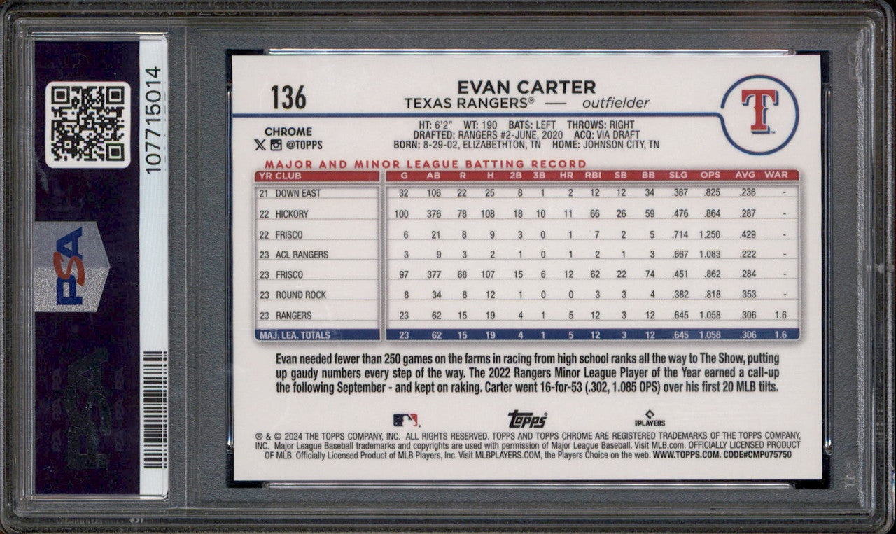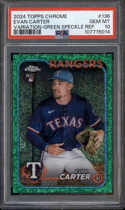 2024 Topps Chrome Variation Green Speckle Ref #136 Evan Carter RC /99 PSA 10