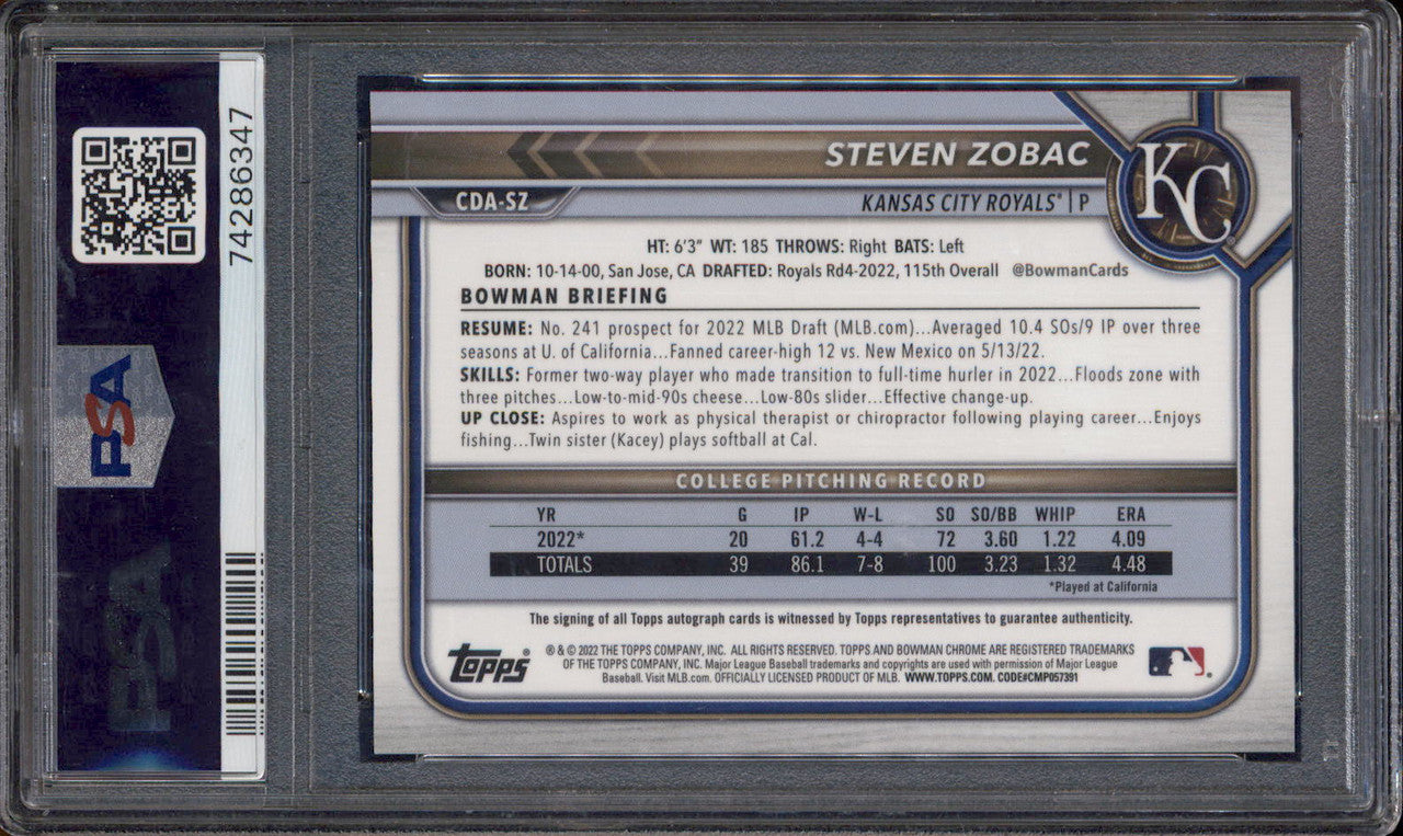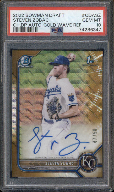 2022 Bowman Chrome Draft Auto Gold Wave Refractor Steven Zobac RC /50 PSA 10