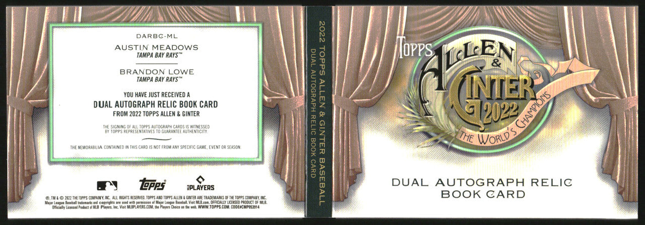 2022 Topps Allen & Ginter Dual Auto Relic Book Austin Meadows Brandon Lowe /10