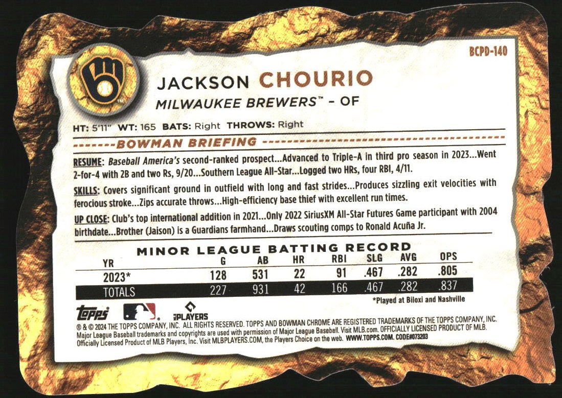 2024 Bowman Chrome Special Die Cut Variations #BCPD-140 Jackson Chourio /49